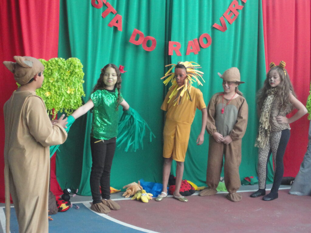 Diversão com fantasias e música. Fomenta a criatividade, fortalece os laços e cria um ambiente inclusivo e valorizador.